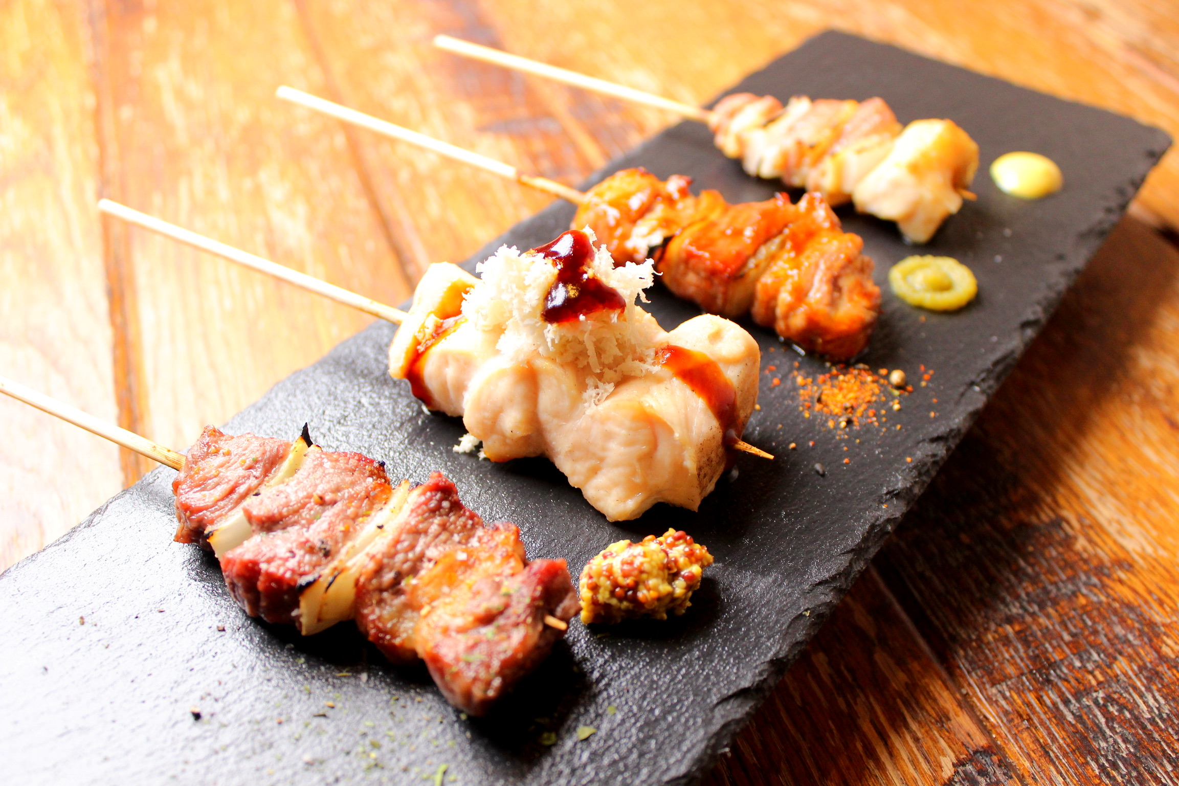 道産の豚、鶏、野菜の串物、季節の焼きもの。